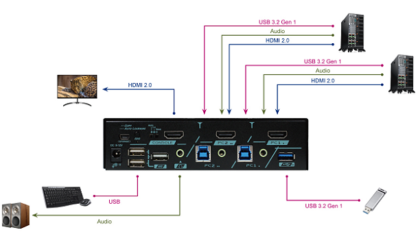 Rextron 2 Ports True 4K HDMI 2.0 KVM Switch With USB 3.2 Gen 2, HDCP Engine, Audio and Hotkey Control is the first USB 3.2 Gen 2 KVM Switch in the world that can support higher-speed USB drive, USB storage, and higher resolution 4K 60Hz ( 4:4:4 ).