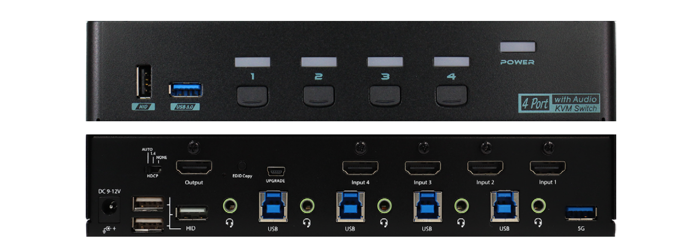 HDMI 2.0 KVM Switch with HDCP Engine 3.5mm audio EDID management function ensures the optimized picture output without flickering or black screen compatibility issues. Independent 3.5mm stereo analog audio and USB 3.2 Gen 1 ports provide excellent I/O speed to meet most requirements. For your convenience, there is also a buzzer sound effect for operation confirmation.