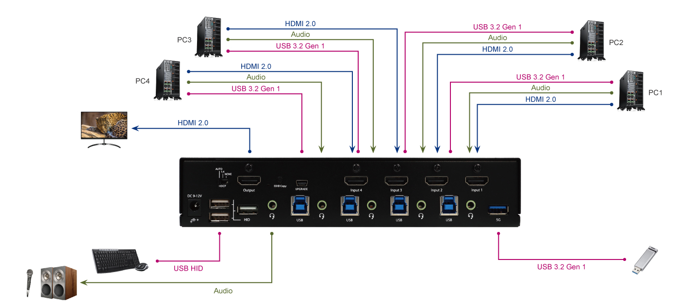 HDMI x 4 ( Single Display x 4 PCs )