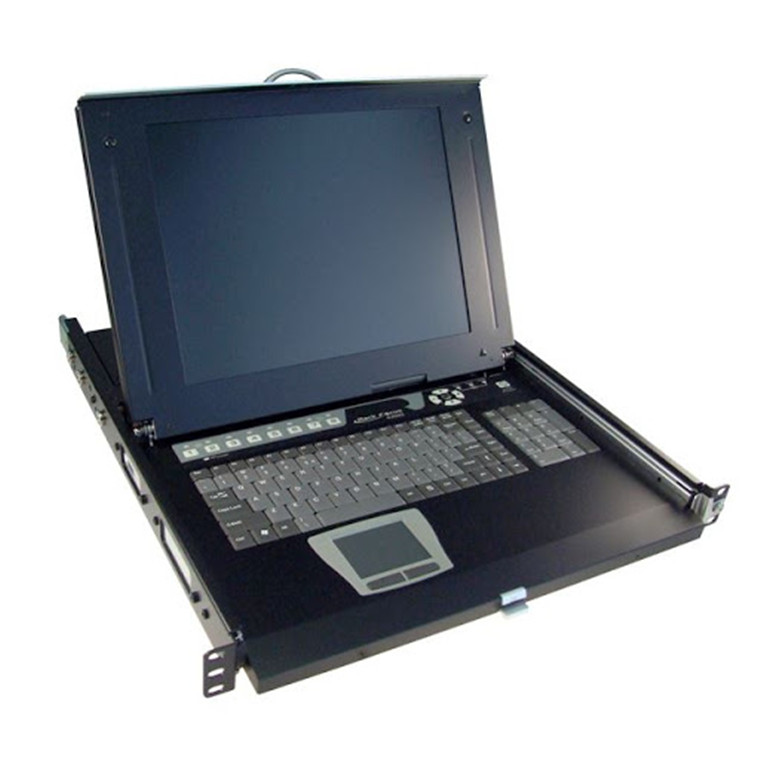 All-in-1 Integrated LCD KVM Drawer 1 console to 8 PS/2 or USB PC's 19" TFT LCD, Keyboard Drawer, Rear Bracket ext. Kit (48-93cm) 8 x 1.8M VGA / USB Cables, 1U High Unit is in black colour. The 1RU 19" all-in-one LCD integrated KVM switch is an ideal solution for server cabinets. The all-in-one solution is available in 15", 17" or 19" LCD and 8 or 16 port KVM switch options. The All-in-One integrated LCD KVM is the ultimate solution for computer management. With a keyboard, touchpad, TFT LCD panel and a KVM switch housed in an industry standard 19" 1RU height rack drawer, the integrated LCD KVM can be cascaded with other Rextron KVM switches to provide greater computer management. The integrated KVM is ideal for applications where space is a premium.