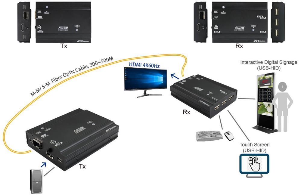 Rextron FXA1MU-M57 True 4K HDMI Fiber KVM Extender with USB 10G SFP Module 500M (Single-Mode)