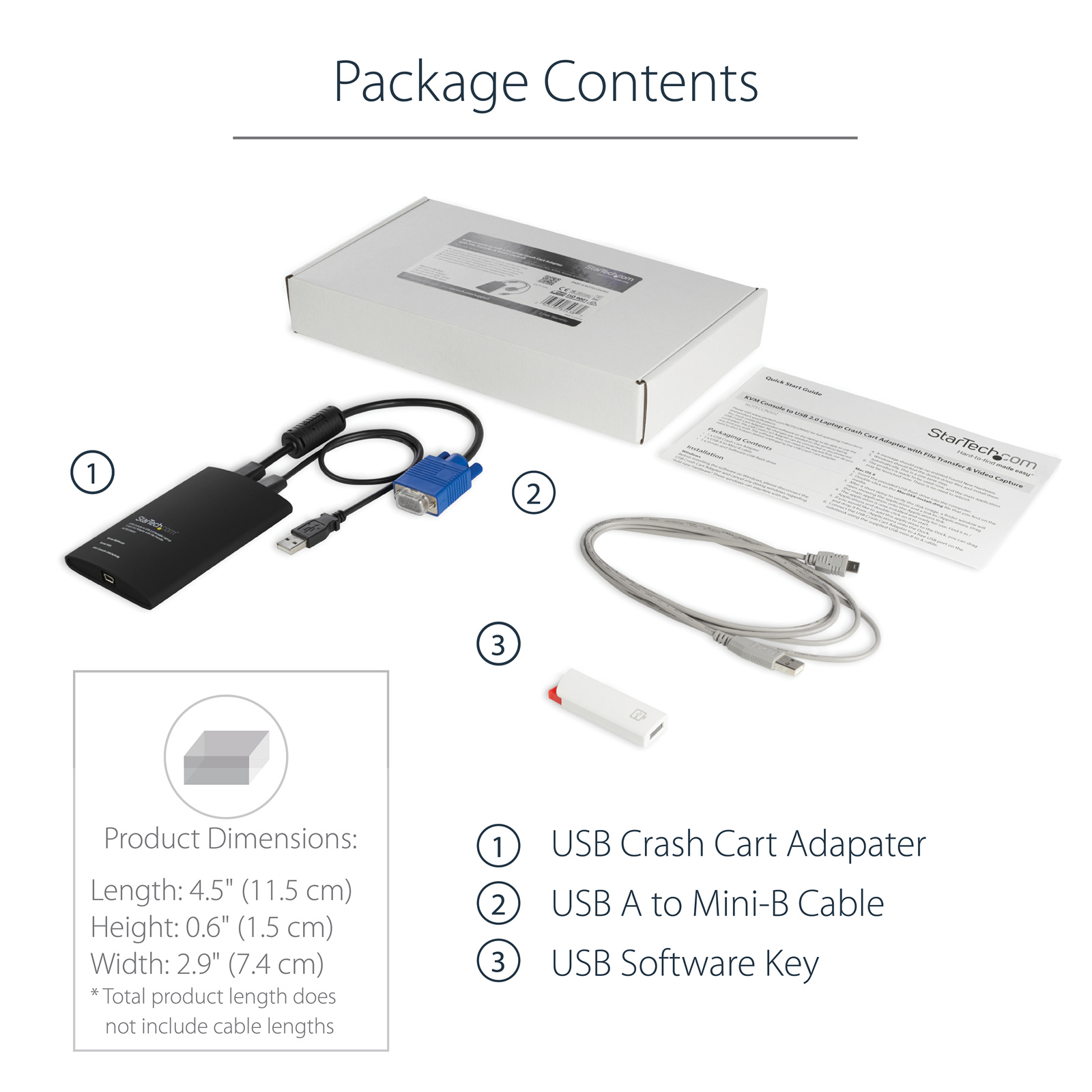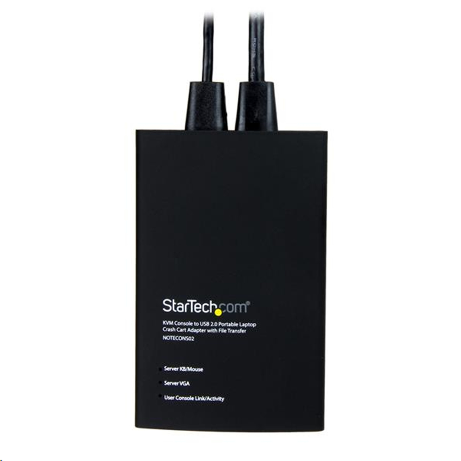 The NOTECONS02 Portable USB Crash Cart Adapter lets you turn your laptop into a portable console for rack servers, PCs, ATMs, kiosks and more, now with local file transfer and video capture built into the software. Simply connect the crash cart adapter to your laptop using the included USB cable, then connect the integrated USB and VGA cables to your server for instant, BIOS-level control.
