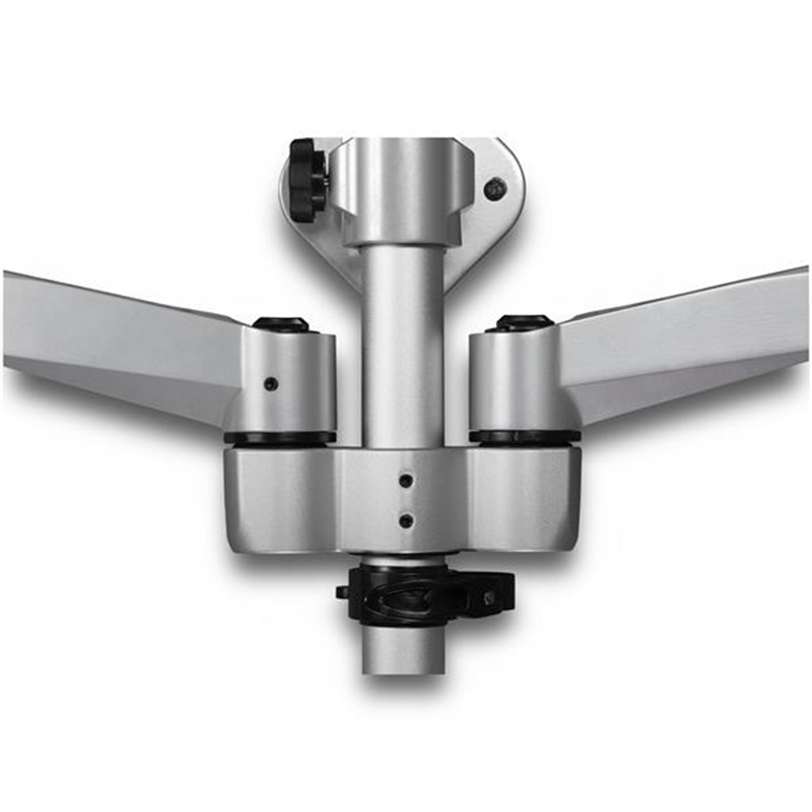 This wall-mounted height-adjustable desk enables a wide range of users to work in comfort. Adjust the height of both arms along the pole up to 17.5" (44.5 cm), plus the spring monitor arm has a height adjustment range of 10.6" (27 cm).