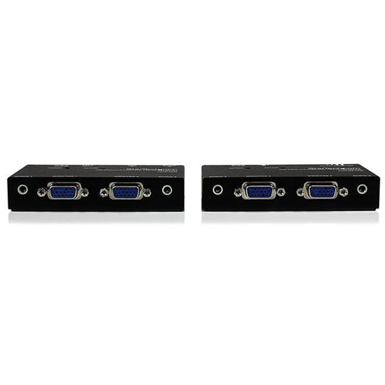 The ST122UTPA VGA Video Extender over Cat 5 with Audio allows up to 4 (2 local and 2 remote) monitors to be connected to a single PC. The video signal and corresponding audio are sent to the remote unit over standard 4 pair Category 5 or better (Cat 5e recommended) UTP cable, supporting extended video distances of up to 150m / 500ft.