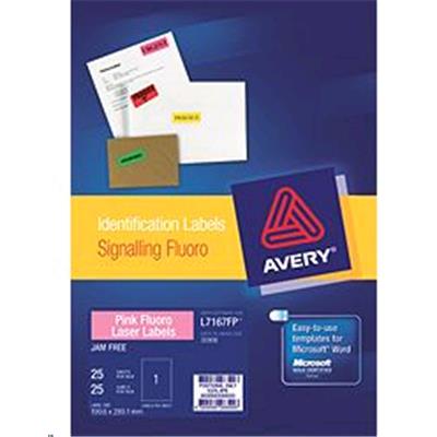 AVERY LABEL L7167-25FP PINK FLUORO 199.6 X 289.1 PACK 25