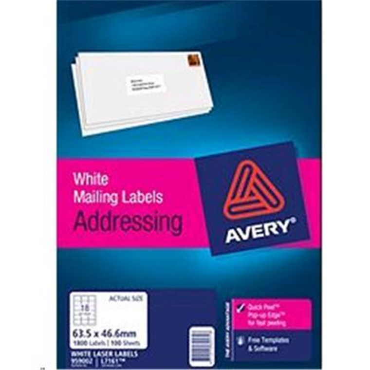 Product URL: https://www.pbtech.co.nz/product/LABAVE238024/AVERY-LASER-LABEL-L7161-100-100-SHEET