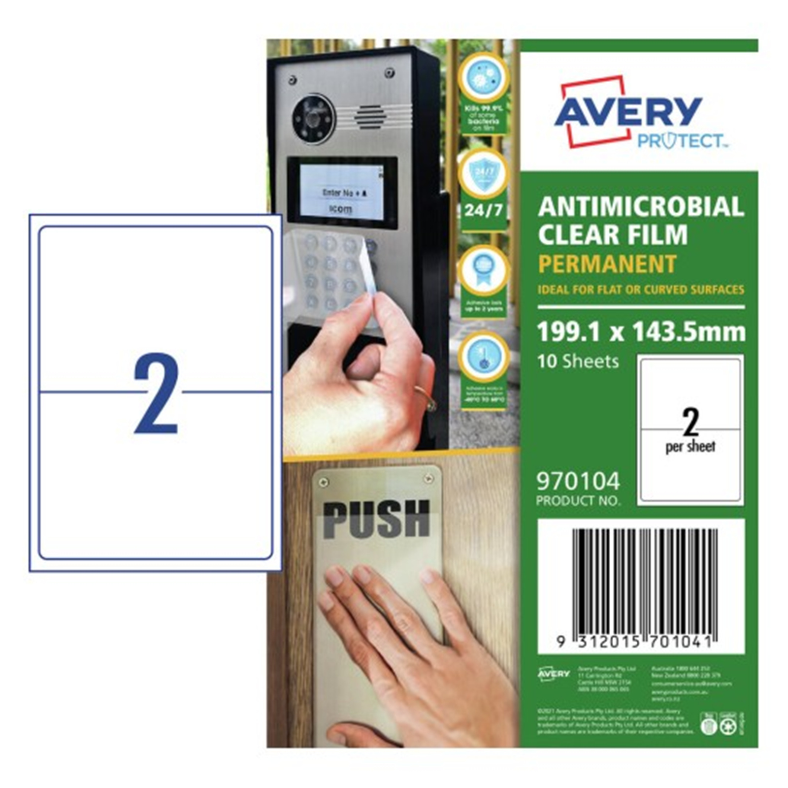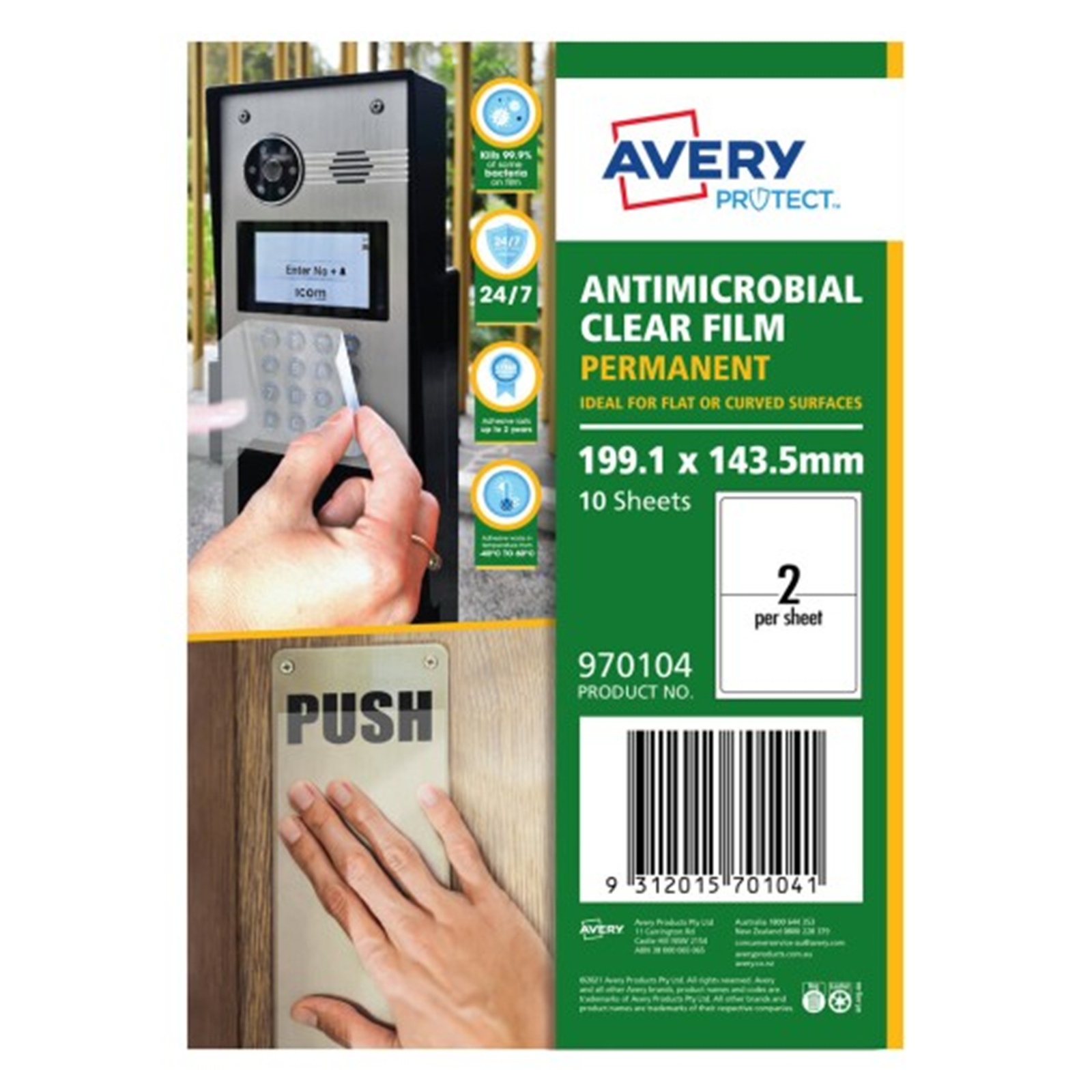 Product URL: https://www.pbtech.co.nz/product/LABAVE238917/AVERY-Protect-Anti-Microbial-Film-Permanent-A4-2up