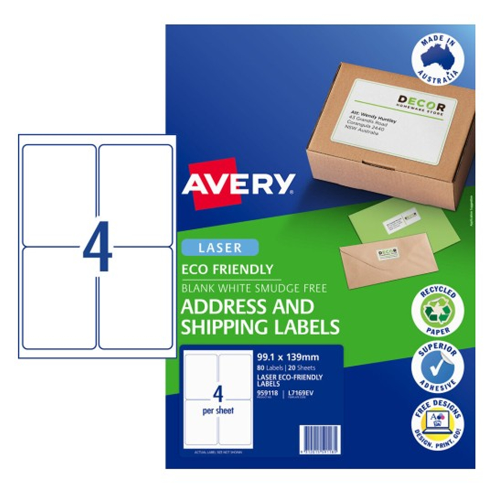 AVERY Eco Friendly Address Labels 99.1x139mm 4up 20 Sheets