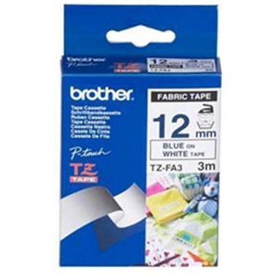 Brother Genuine TZe-FA3 Fabric Tape Cassette Blue on White, 12mm wide, 3m long for PT-D410, PTD610BT,PTD210,PT-D400, PTD600,PT-P910BT,PT-H110, PT-P300BT