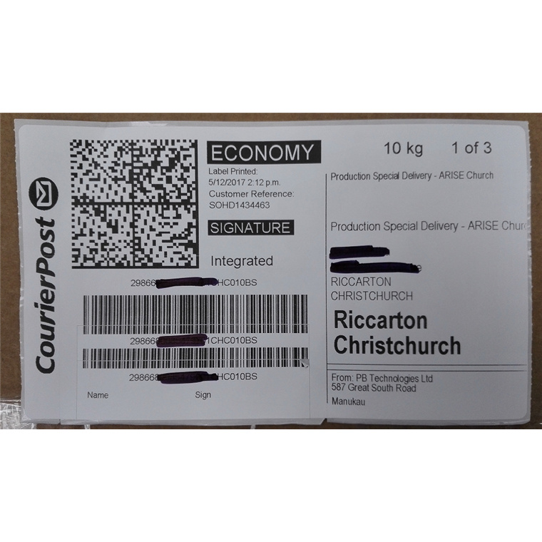 CRS TDCPT101173BC750 standard 101mm x 174mnm Rolls of 750 on 76mm core diameter specially required by and designed for NZ Post, CourierPost or Pace
