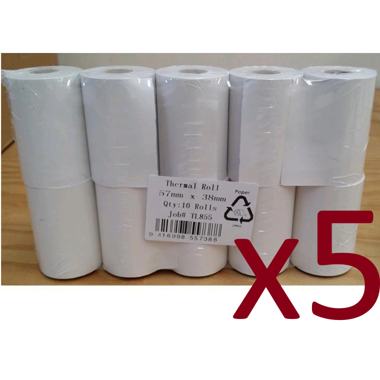 57 x 38mm 1Ply Thermal Roll (5 x Pack of 10's), Price for 50 rolls in a box
