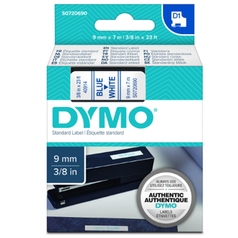 Dymo S0720690 D1 40914 Tape 9mm x 7m Blue on White