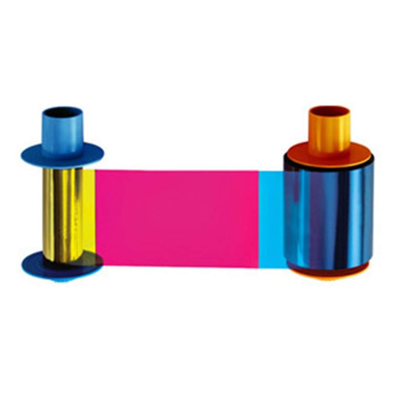 Fargo 84511 YMCK ribbons consist of yellow (Y), magenta (M) and cyan (C) panels for printing a full spectrum of colors by combining the colors using varying degrees of heat. The K panel is a black resin panel, typically used for printing text and barcodes.