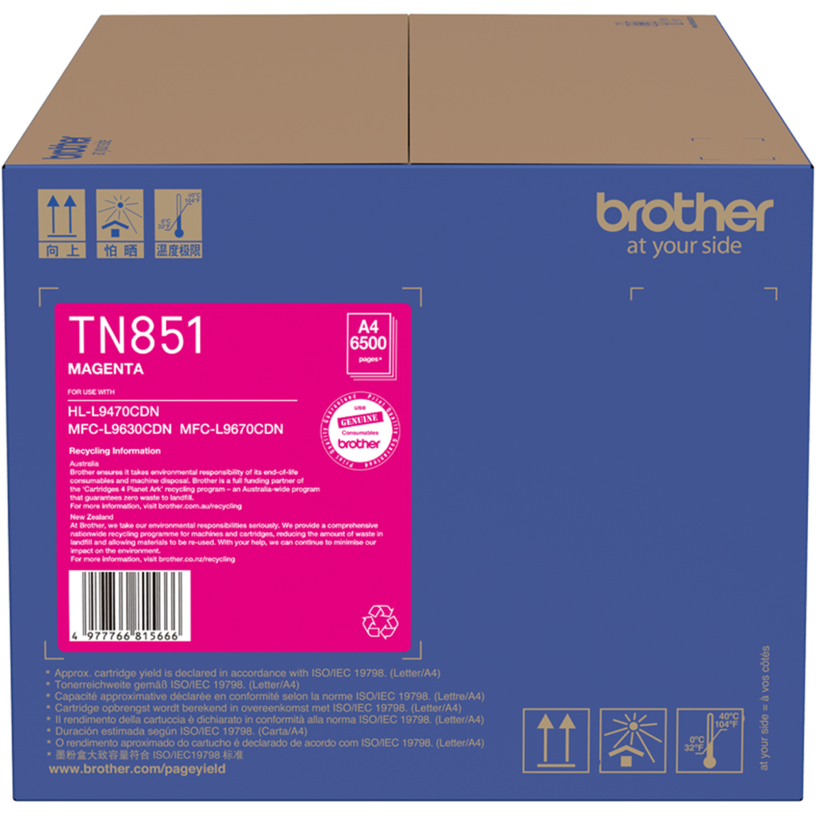 The TN851M magenta toner gives you up to 6,500 pages of printing (approx. yield is declared in accordance with ISO/IEC 19798).