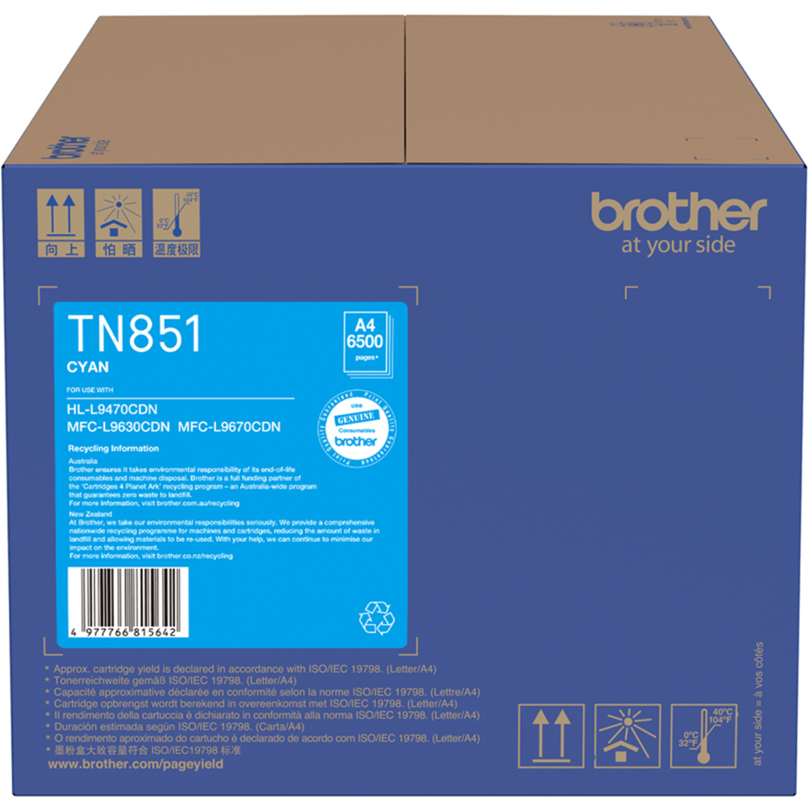 The TN851C cyan toner gives you up to 6,500 pages of printing (approx. yield is declared in accordance with ISO/IEC 19798).