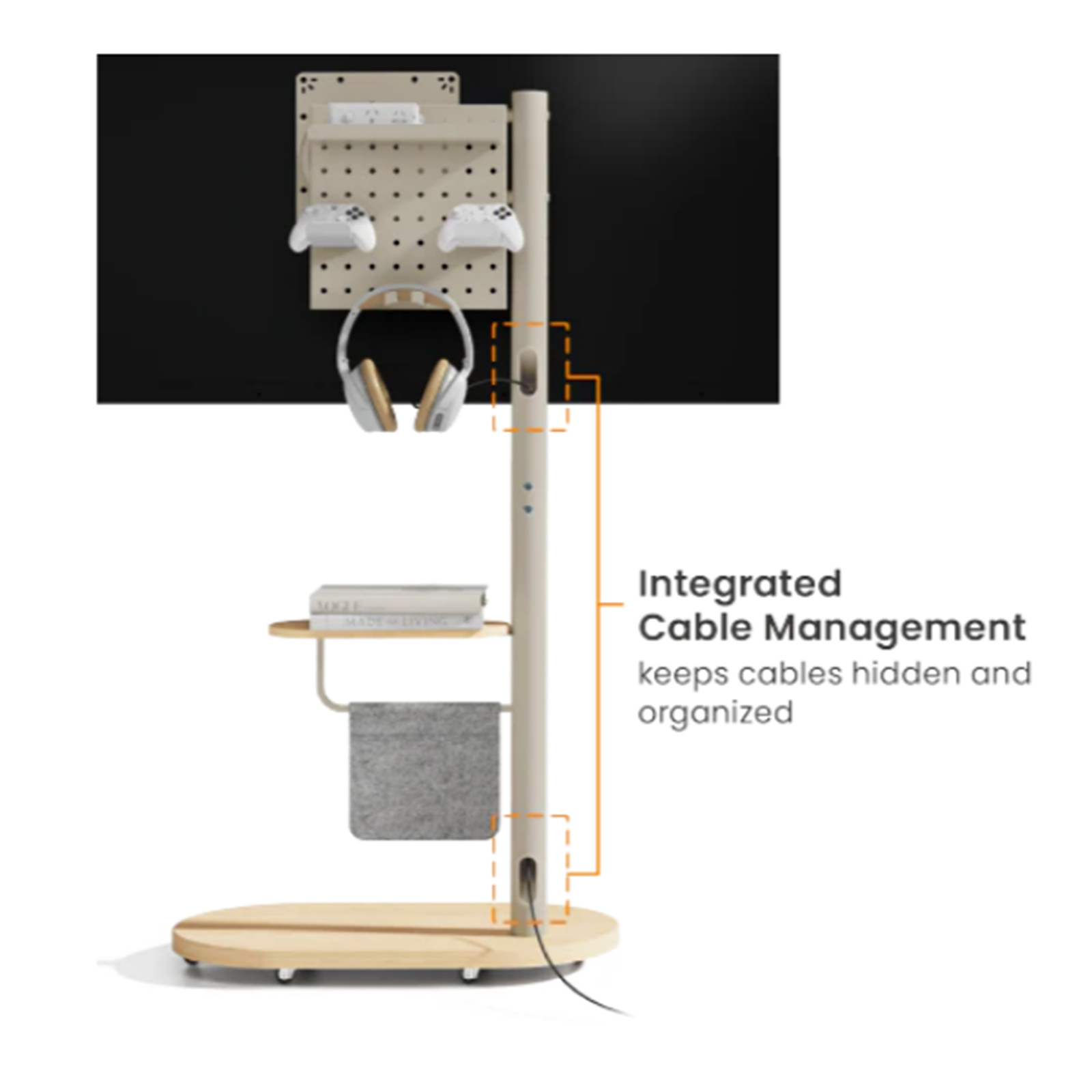 LUMI TT54-22T-02W Mobile Display Floor Stand with Integrated Cable Management Fine Texture Light Brown & Beech -17"-43"