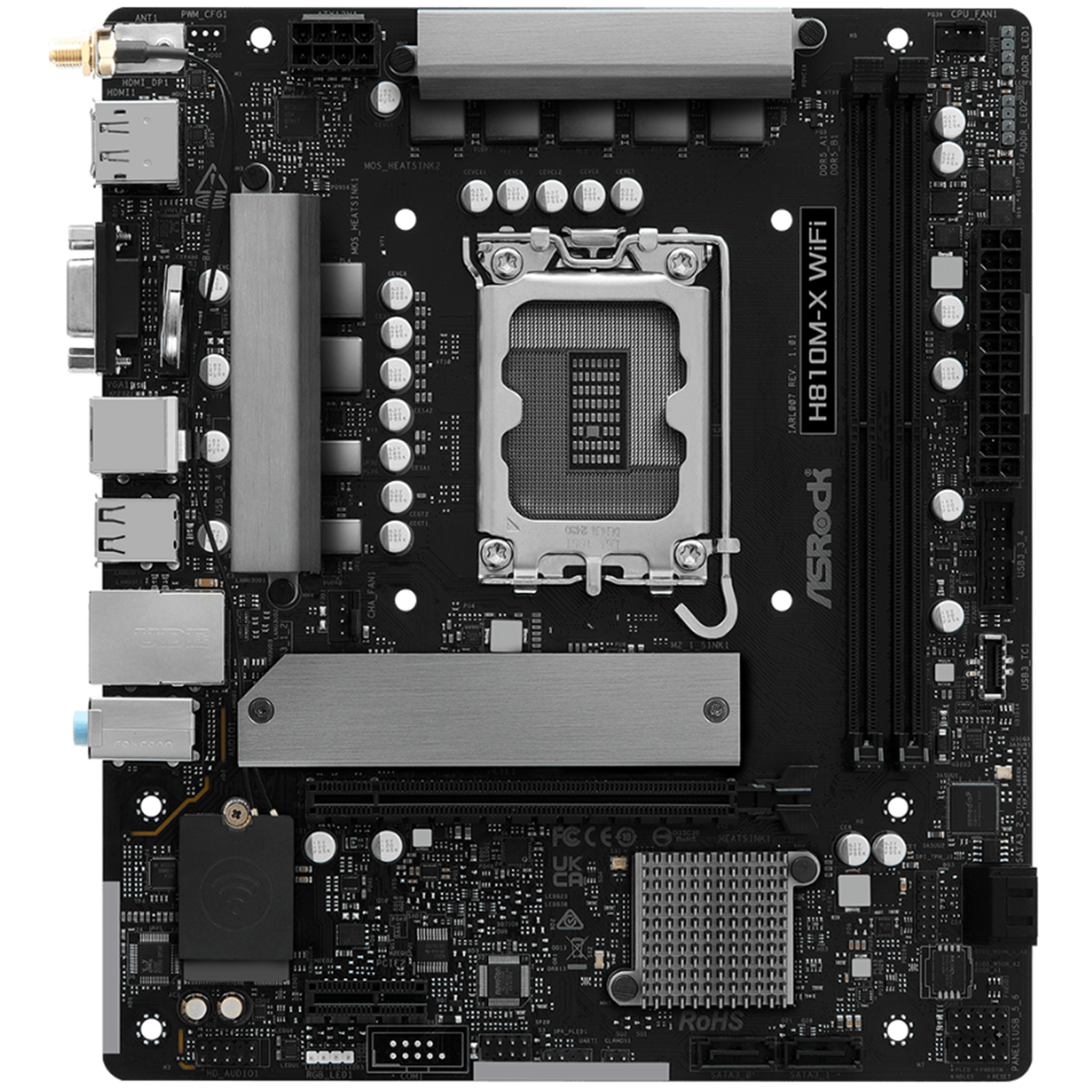 ASRock H810M-X WiFi MATX Motherboard For Intel 15th GEN LGA1851 H810, 1x M.2, 2x DDR5, 1x Internal USB 3.2 Header, 1x Internal USB 3.2 Header, 1x Internal Type C Header, AC WiFi + BT