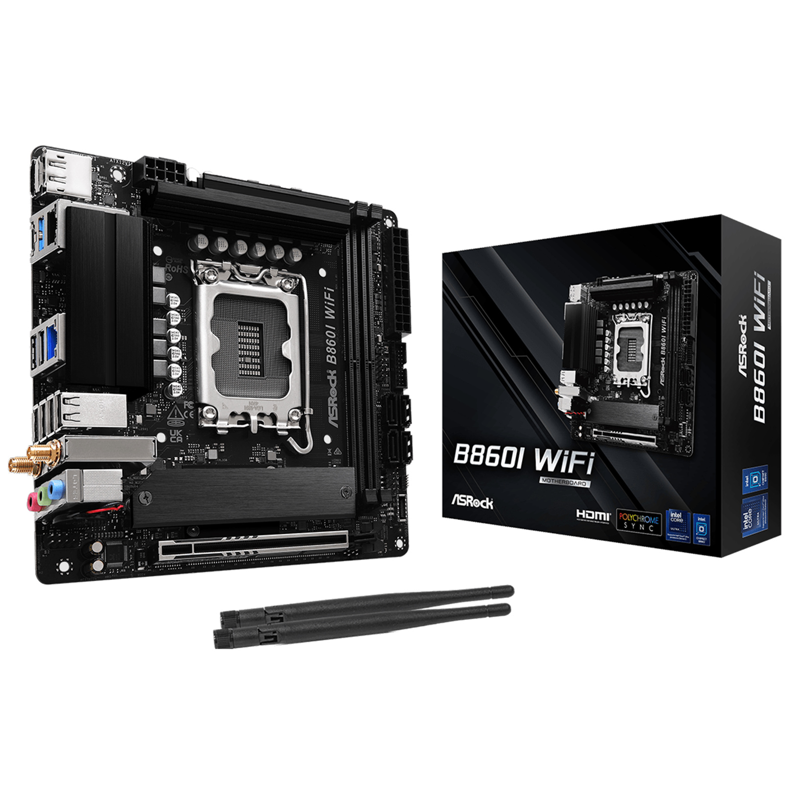 ASRock B860I WIFI ITX Motherboard For Intel 15th GEN B860, PCIE 5.0, 2x M.2, 2x DDR5, 1x Internal USB 3.2 Header, 1x Internal USB 2.0 Header, 1x Internal Type C Header, Wifi 6E+ BT