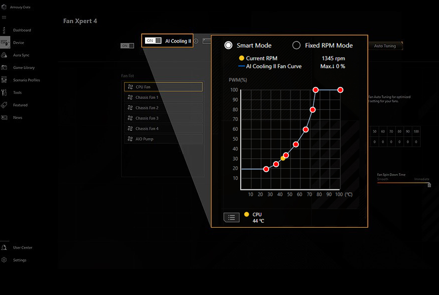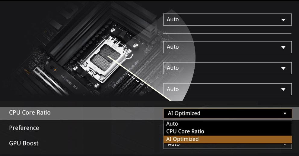 ASUS AI Solutions - including AI Advisor, AI Overclocking, AI Cooling II for thermal control and AI Networking II for real-time bandwidth optimization - offer smart assistance, one click overclocking, efficient cooling and new levels of ultrafast connectivity.