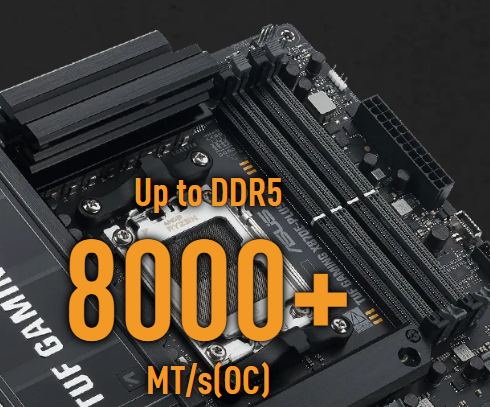 Supports up to 8000+MT/s (OC) with Ryzen™ 9000 & 8000 & 7000 Series Processors, ECC and Non-ECC Un-buffered DIMM