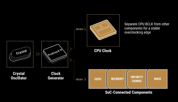 For next-level frequency flexibility, the TUF GAMING X870-PRO WIFI7 W NEO features a built-in clock generator that isolates CPU base clock from memory, PCIe, and the Infinity Fabric speed. Drive CPU performance to its absolute brink while maintaining the stability of related clock domains. Separate CPU BCLK from other domains for unfettered overclocking.