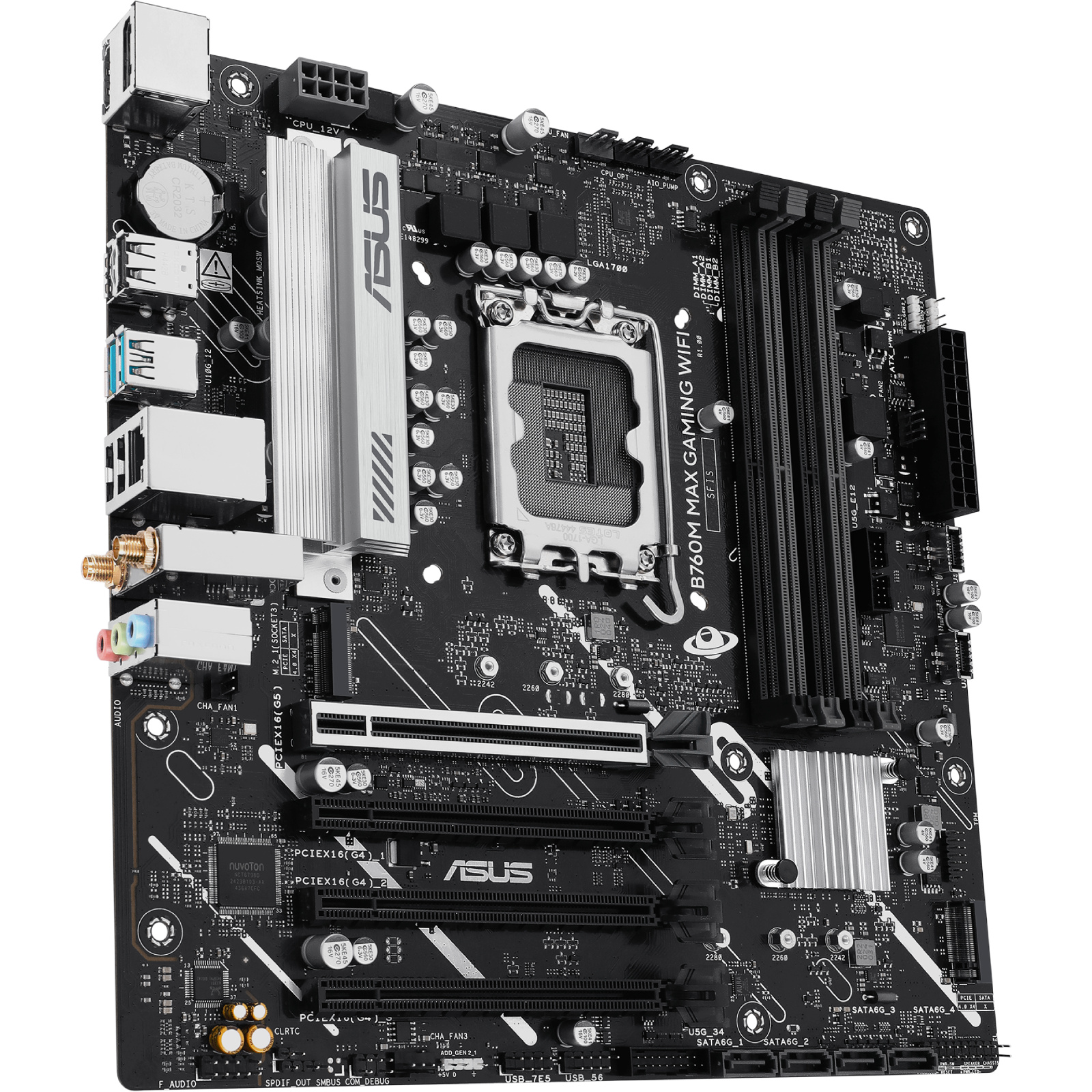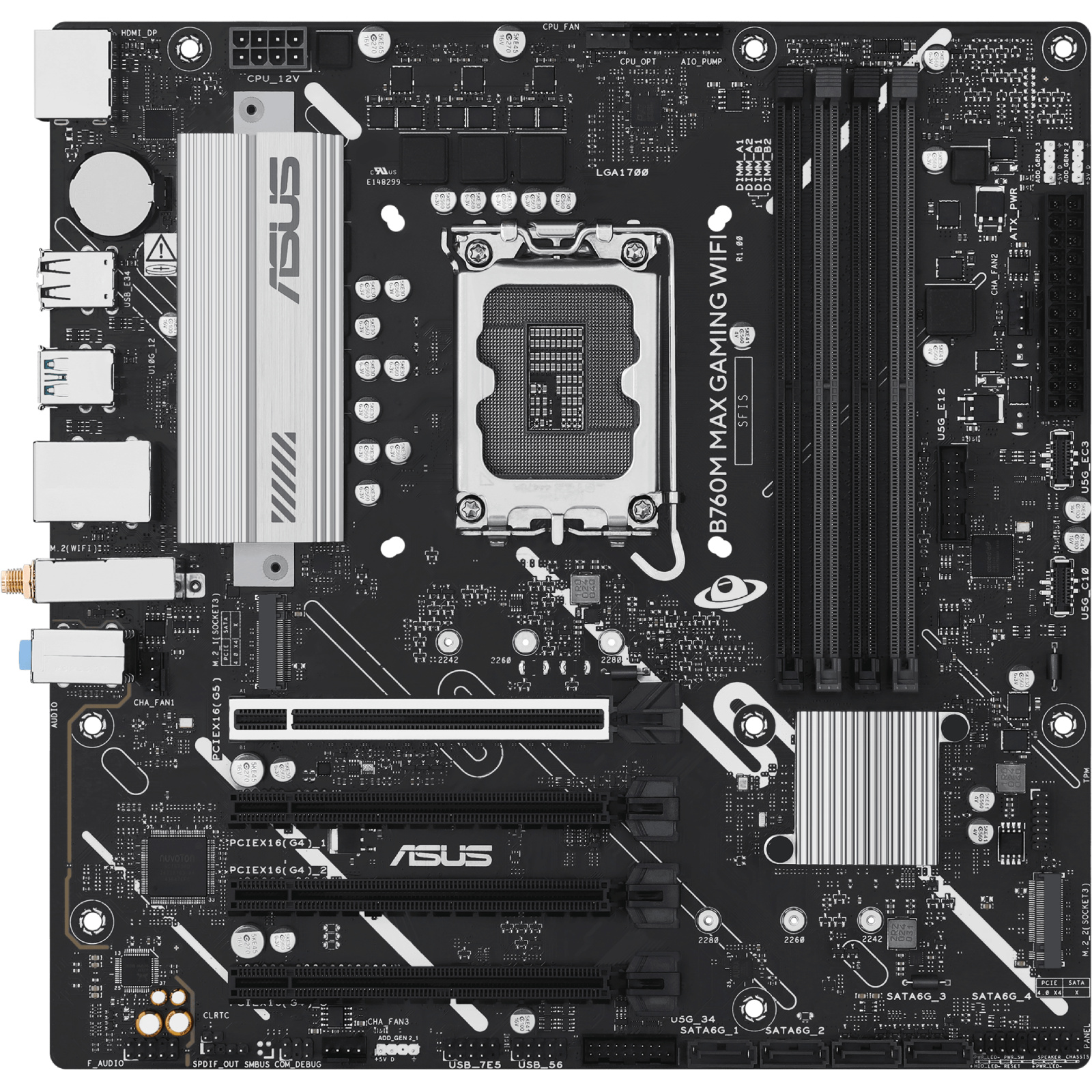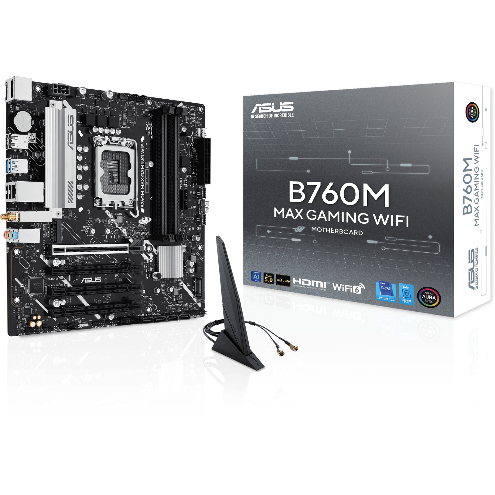ASUS B760M MAX GAMING WIFI mATX Motherboard Intel Socket LGA1700, B760 Chipset, PCIE 5.0, 2x M.2 -DDR5, 2x Internal Type-C Header. 2x Internal USB 2.0 Header, 2x Internal USB 3.2 Header, WIFI 6 & Bluetooth