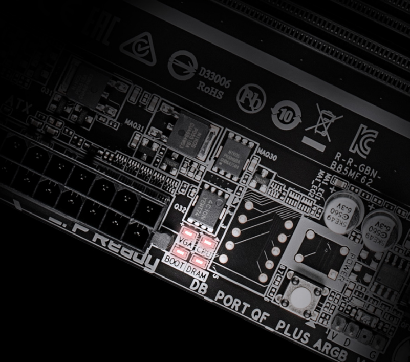 Centralized debug LEDs and control buttons provide a handy and organized troubleshooting process when building a new computer.