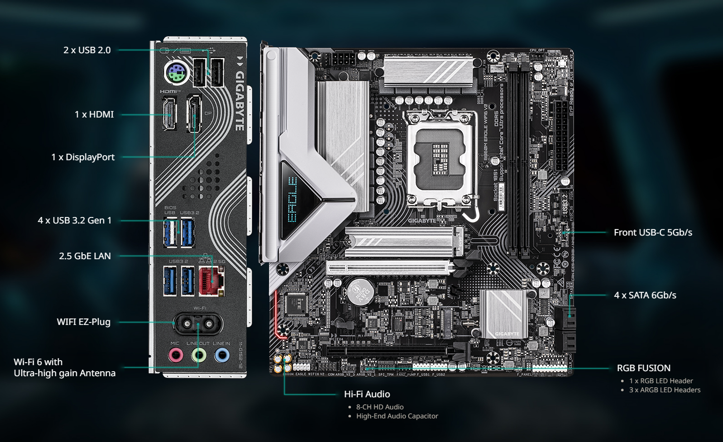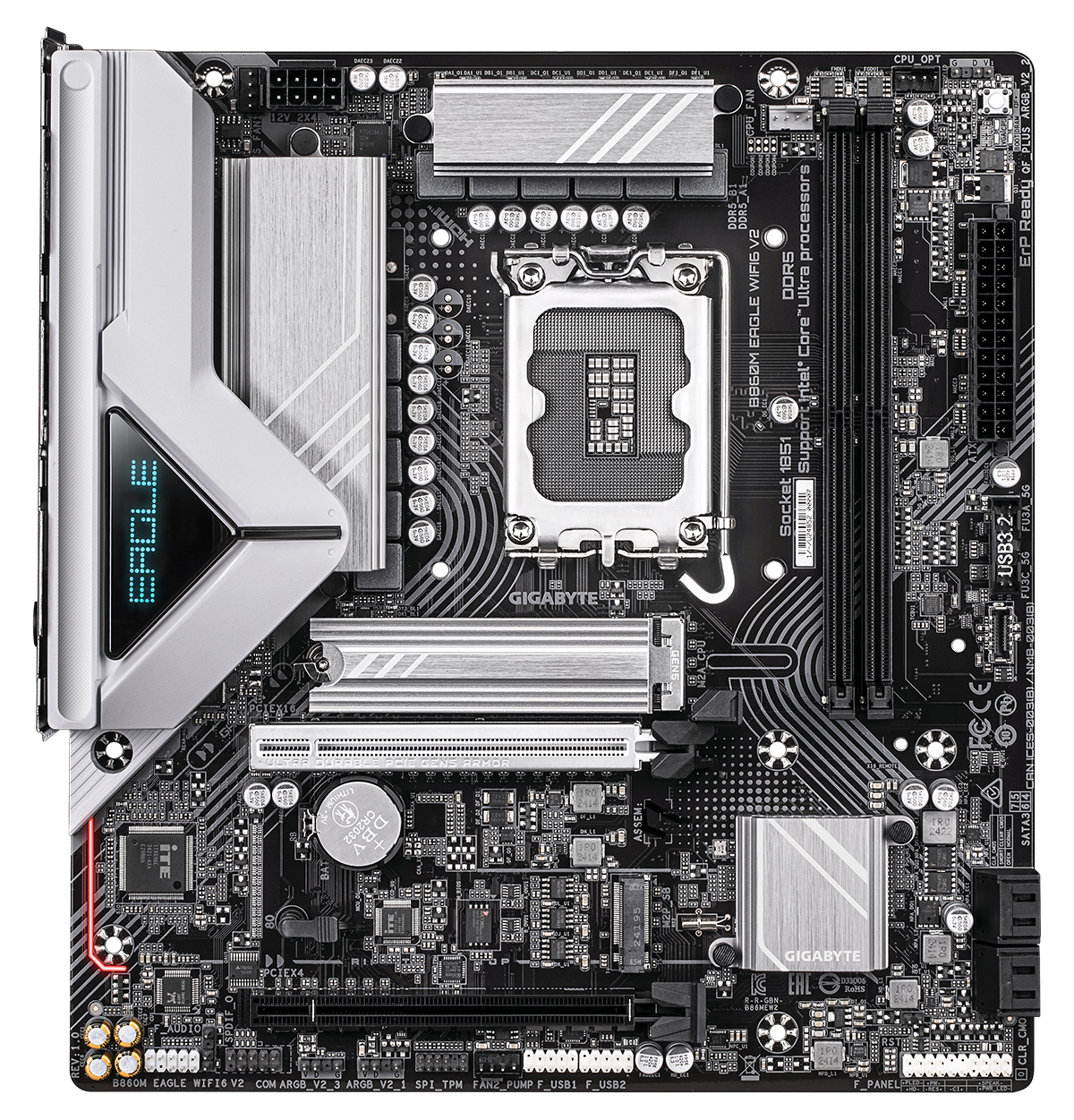 Gigabyte B860M EAGLE WIFI6 V2 mATX Motherboard For Intel LGA1851 - B860 Chipset - PCIE 5.0 - 2x M.2, 2x DDR5, 2x Internal USB 2.0 Header, 1x Internal USB 3.2 Header, 1x Internal Type C Header, Wifi 6 + BT