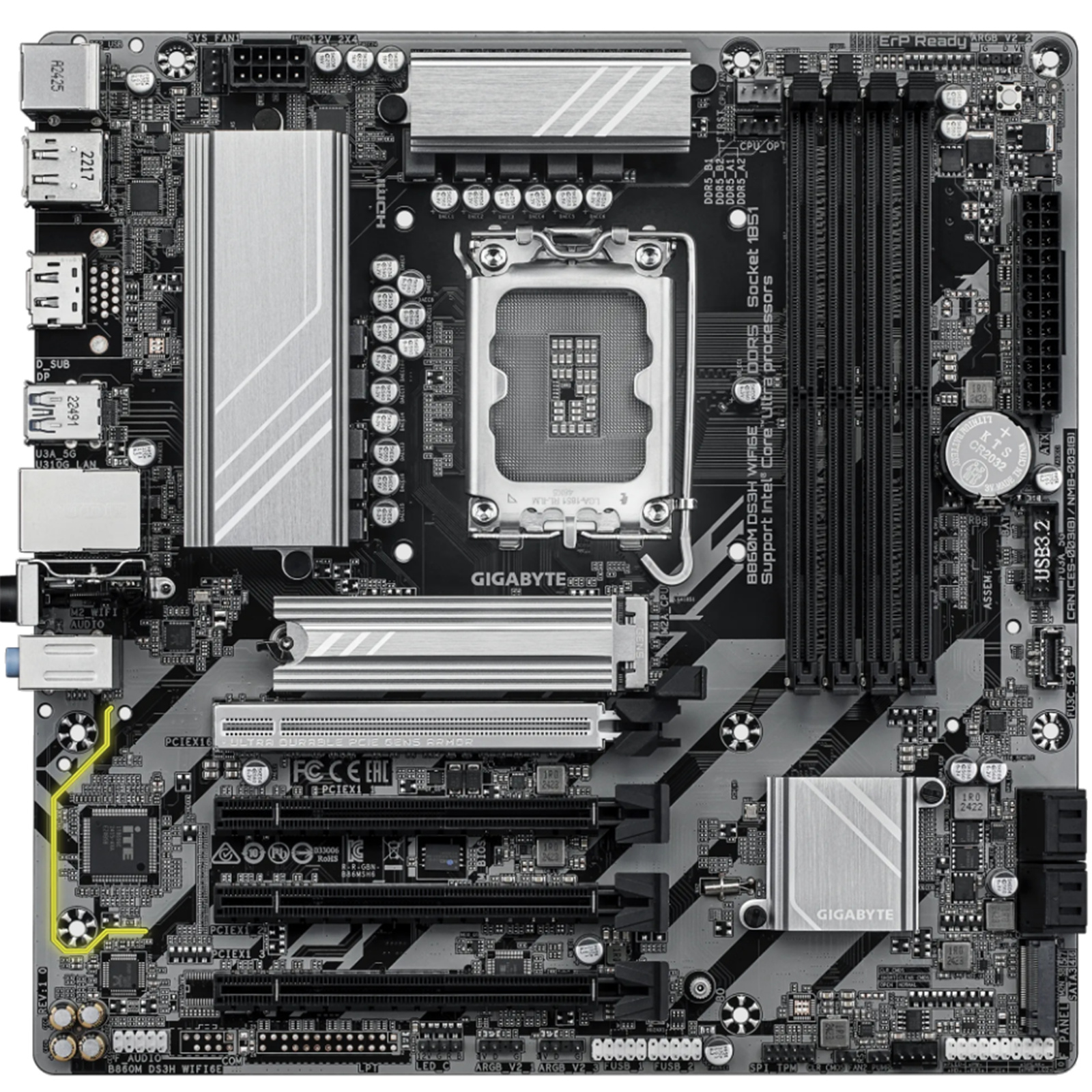 Gigabyte B860M DS3H WIFI6E mATX Motherboard For Intel LGA1851 - B860 Chipset - PCIE 5.0 - 2x M.2, 4x DDR5, 2x Internal USB 2.0 Header, 1x Internal USB 3.2 Header, 1x Internal Type C Header, WiFi 6E + BT