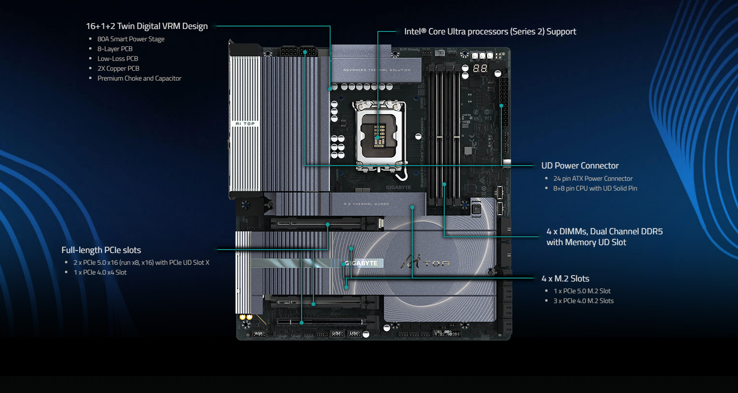 - PCIe UD Slot X : PCIe 5.0 x16 slot with 10X strength for graphics card