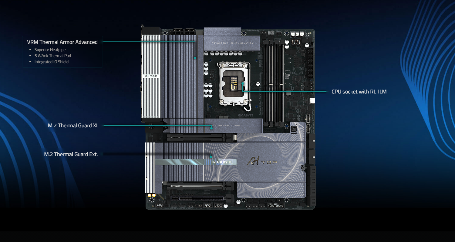 - Reinforced Overall Thermal : VRM Thermal Armor Advanced & M.2 Thermal Guard XL