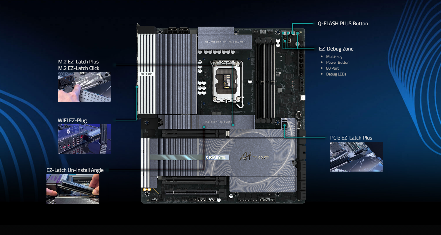 - EZ-Latch Plus : PCIe and M.2 slots with Quick Release & Screwless Design
