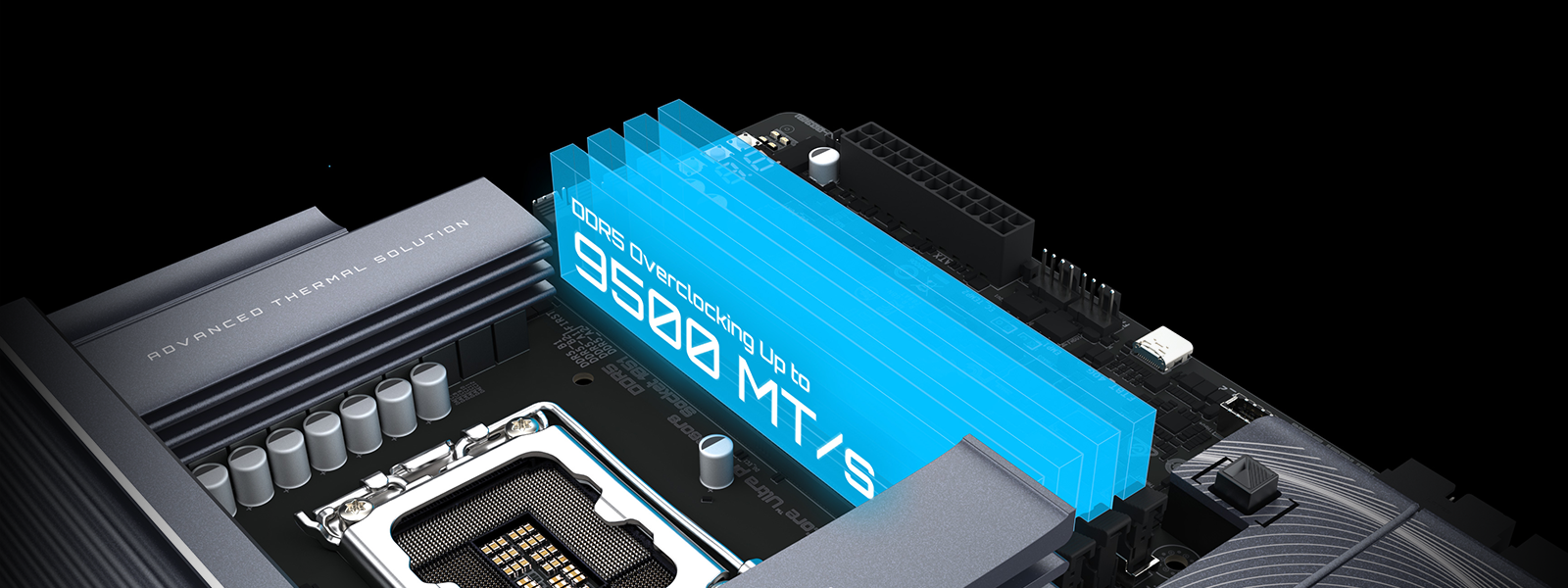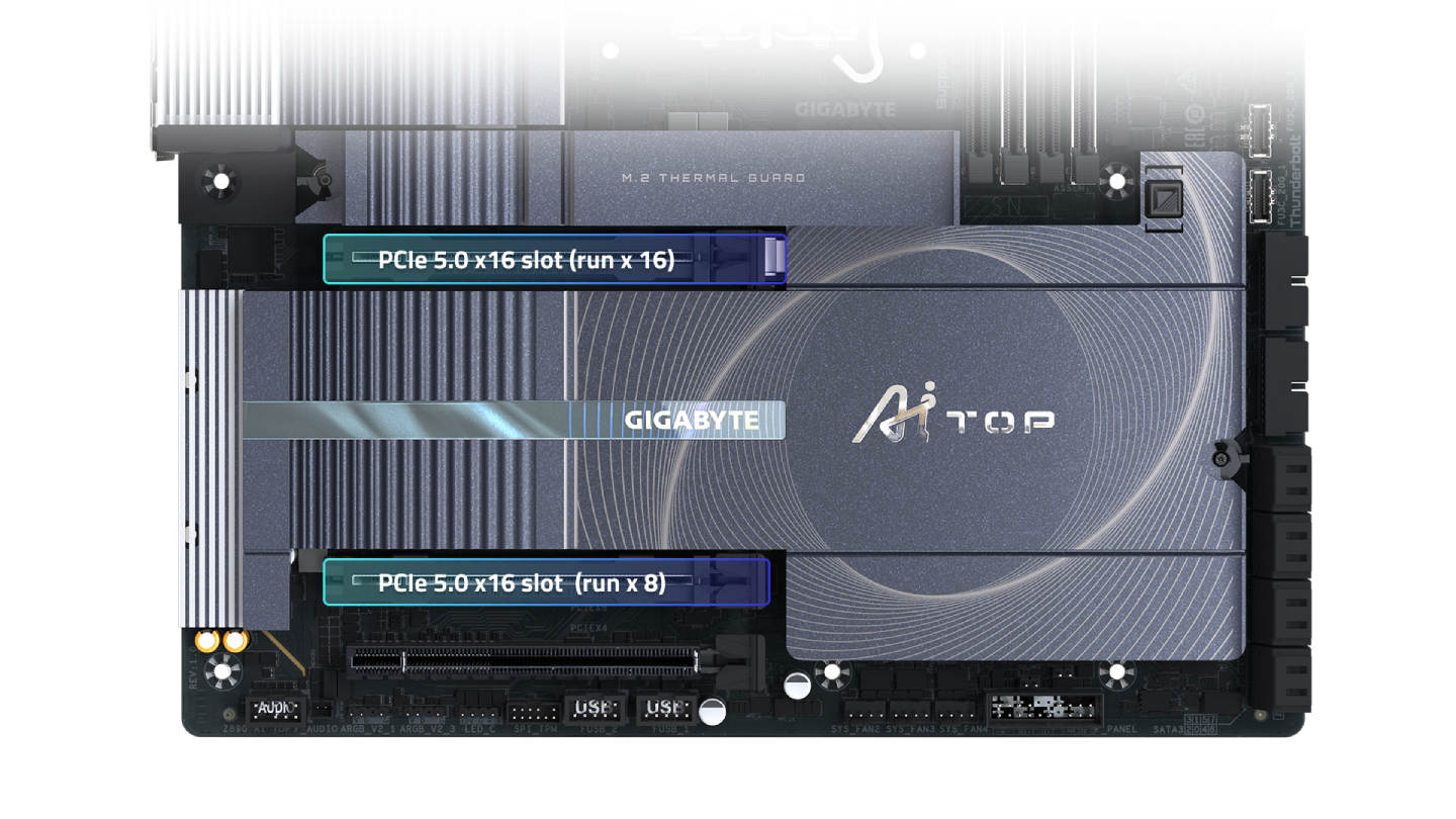 Dual PCIe 5.0 x16 slots (run x16, x8) to deliver premium graphics performance for superior rendering capabilities, more immersive gaming experience, and AI trainings.