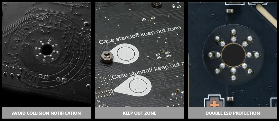 MSI motherboards circuitry ensure the case standoff keep out zones are pure and clean. Moreover, the protective paint is printed around each screw hole to prevent parts from being scratched or damaged to the motherboard.