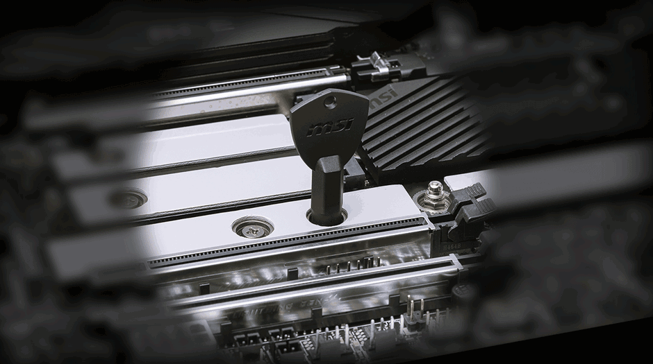 MSI's exclusive EZ M.2 Shield Frozr II and EZ M.2 CLIP II make M.2 installation seamless. Insert the SSD card into the slot and press it down to lock it in place with the clip. As fasten the SSD, flick the clip outwards and then the SSD is removed. The process is smooth, and you don't need to use your tools like before. One finger can give you perfect DIY experience.