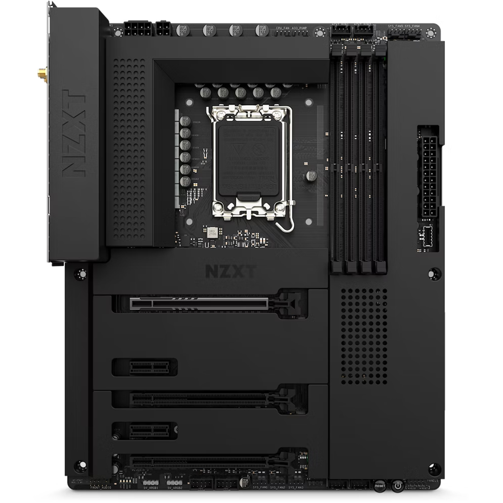 NZXT Z790 Matte Black ATX Motherboard Intel Socket LGA1700, Z790 Chipset, PCIe 5.0, 4x DDR5 Dimm, 3x M.2, Back I/O: 7x USB, 1xType-C, HDMI, LAN, AX WiFi + BT, HD Audio, Internal I/O: 1x USB 3.2, 2x USB 2.0, 1x Type-C, 2x5V A-RGB