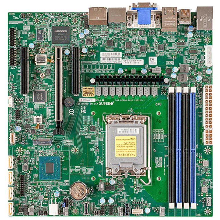 Supermicro X13SAZ-F Server Motherboard, mATX, LGA1700, R680E, 4 DIMM, 2x 2.5GbE, 4x SATA, 1x M.2, 1x PCIe 5.0 x16, 2x PCIe 4.0 x4, IPMI