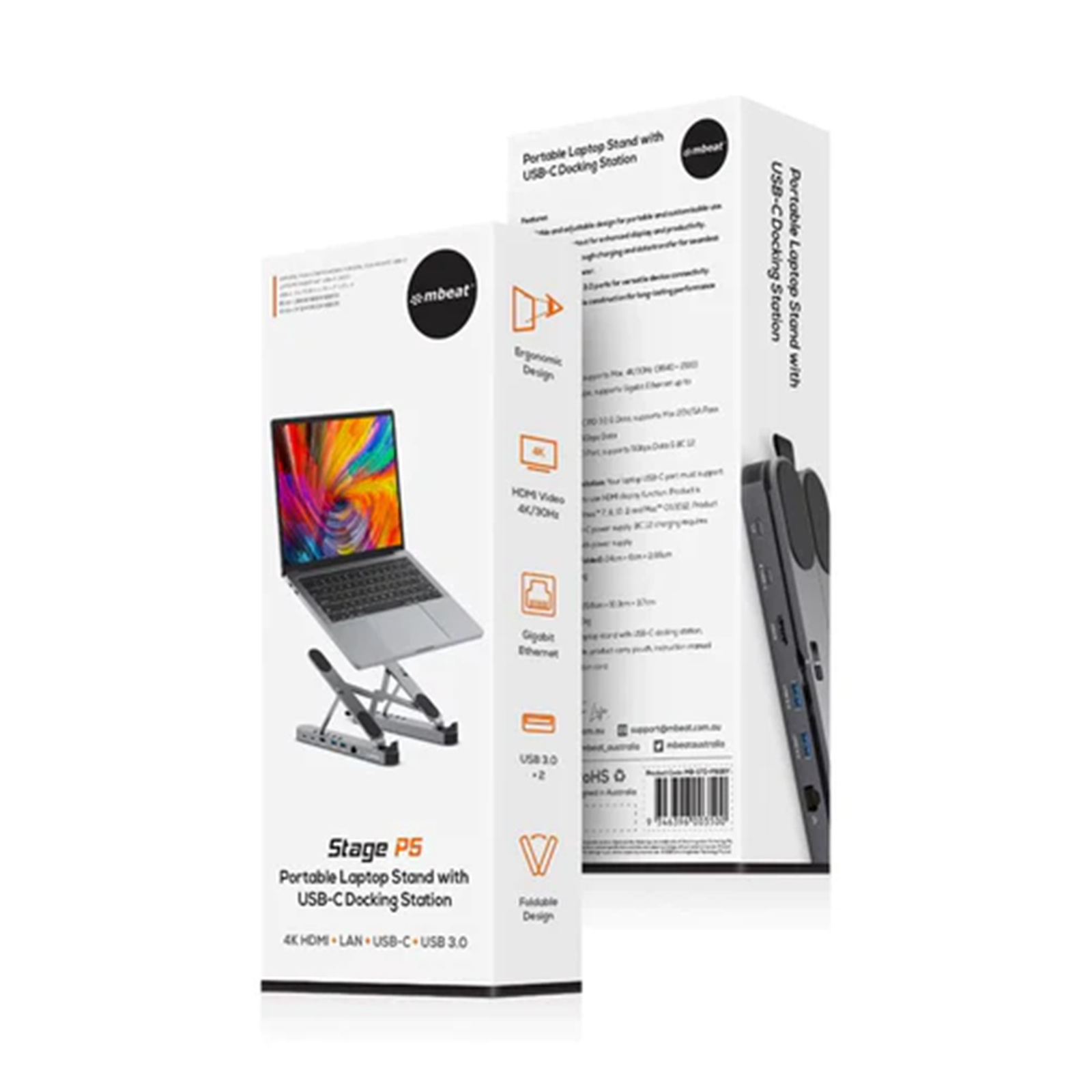 Product URL: https://www.pbtech.co.nz/product/MBE1003/mbeat-Stage-P5-Portable-Laptop-Stand-with-USB-C-Do