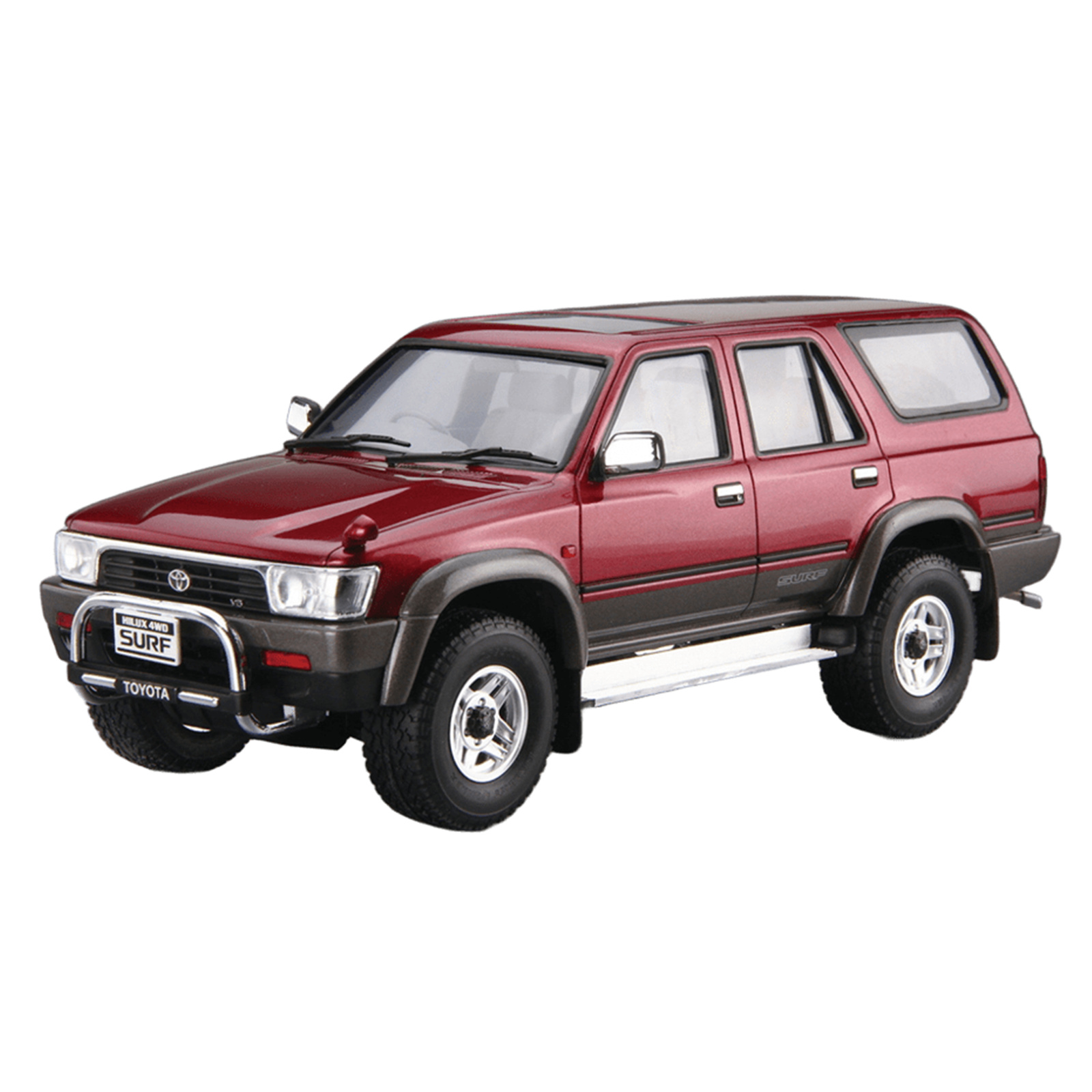 The 1991 Toyota Hilux Surf SSR-X Wide Body embodied the tough yet practical SUV style of the early 1990s. This 1/24 scale Aoshima kit replicates the wide-body design released in August 1991, showcasing the vehicle's balance of daily usability and light off-road capability.