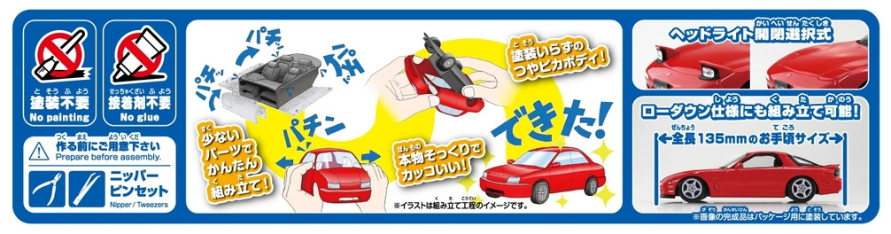 The body color is reproduced by coloring the plastic material, eliminating the need for painting.