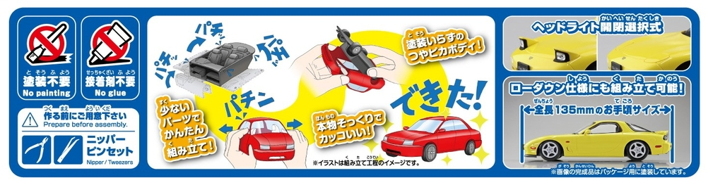 The body color is reproduced by coloring the plastic material, eliminating the need for painting.
