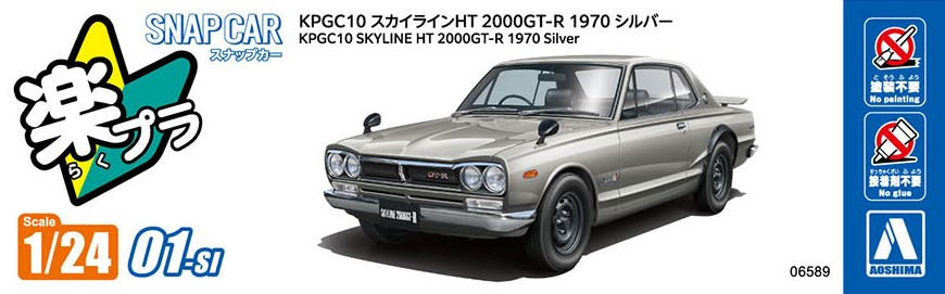 Aoshima 3-6589 1/24 SKYLINE HT 2000 GT-R 1970 SILVER