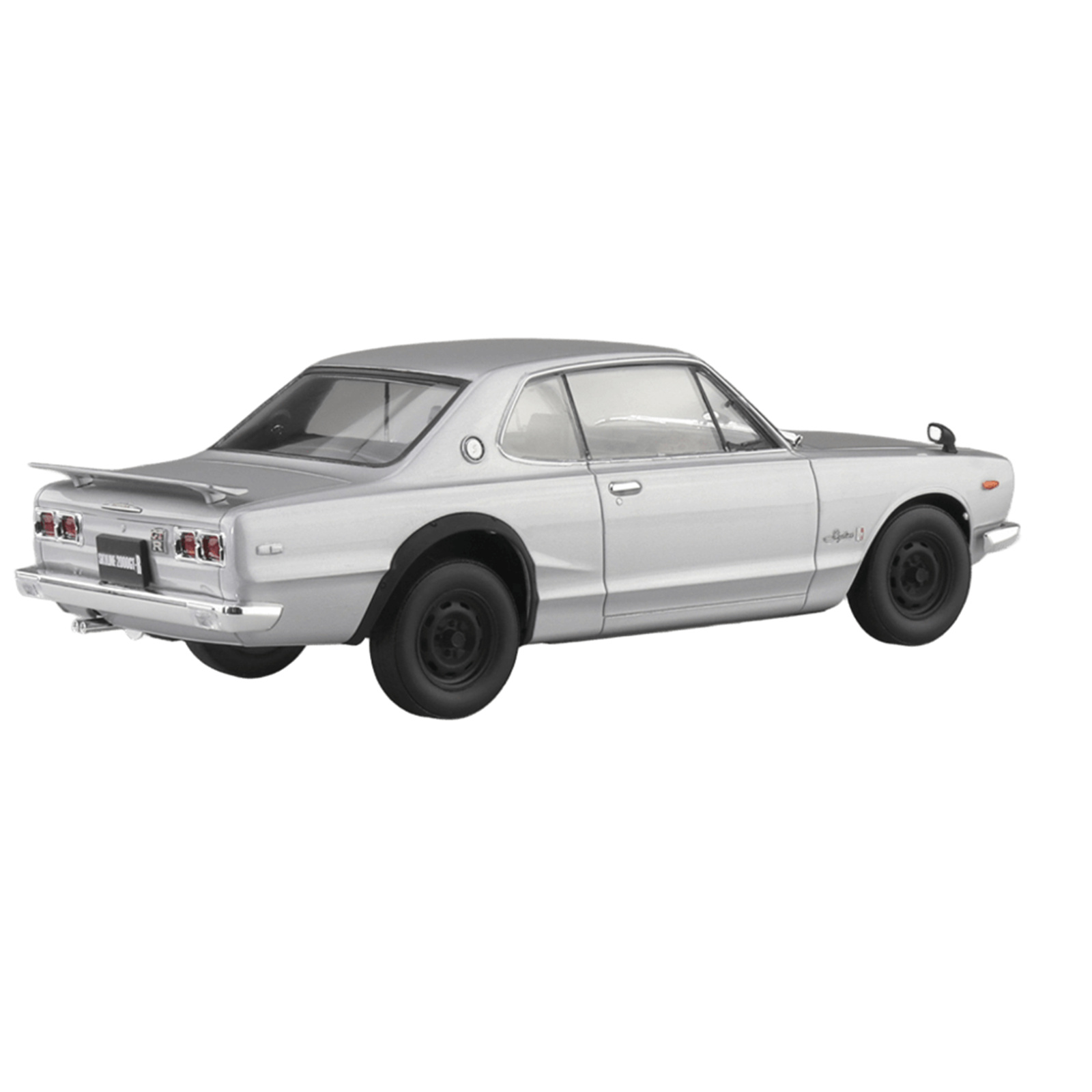 Once assembled, the model showcases the KPGC10's iconic stance and authentic period details. The sleek silver paint and precise decals make it an eye-catching addition to a retro car collection or a dedicated shelf of classic Skylines.