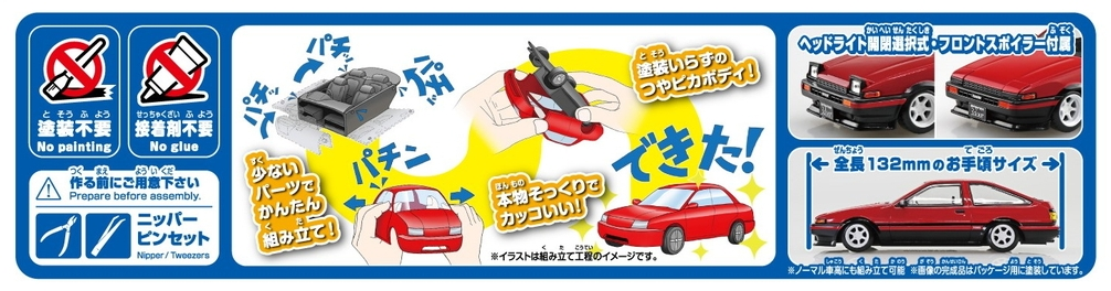 The body color is reproduced by coloring the plastic material, eliminating the need for painting.