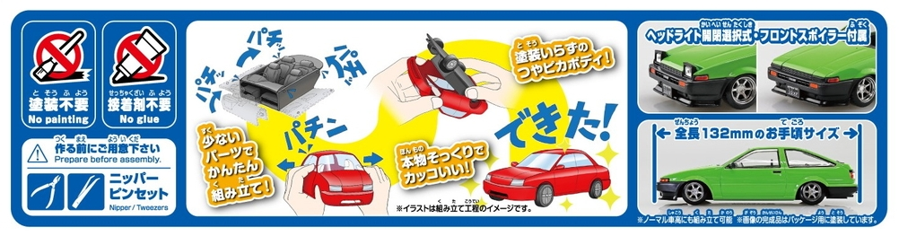 The body color is reproduced by coloring the plastic material, eliminating the need for painting.