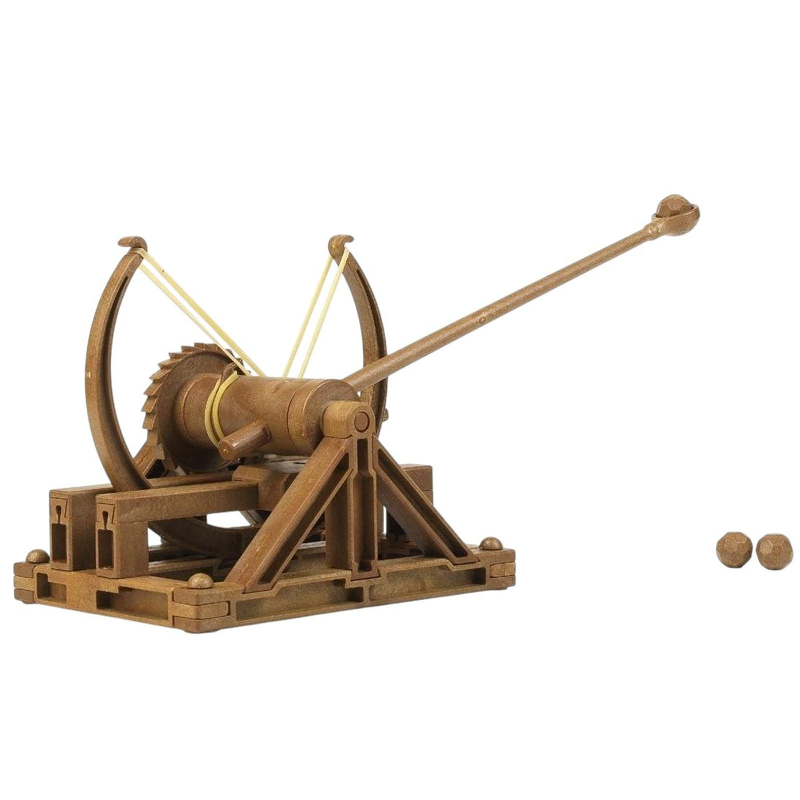 Academy's Da Vinci Catapult is a snap-together model kit inspired by Leonardo da Vinci's catapult improvement. It doesn't invent the catapult but enhances it-using a drum and leaf-spring mechanism instead of traditional tension methods.