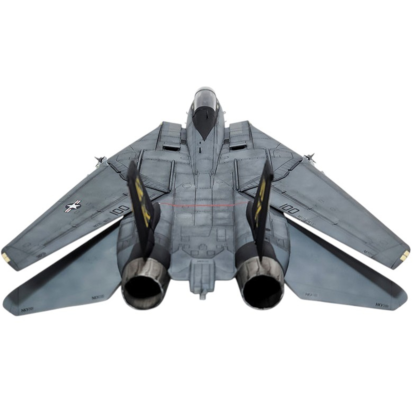 Every surface of the aircraft is intricately molded with recessed panel lines and rivet details that add to the model's realism. These subtle engravings closely follow the contours of the actual F-14D, emphasizing its mechanical complexity and robust airframe. From the nose cone to the engine nacelles, the detailed panel work enhances the visual fidelity and scale authenticity of the finished build.