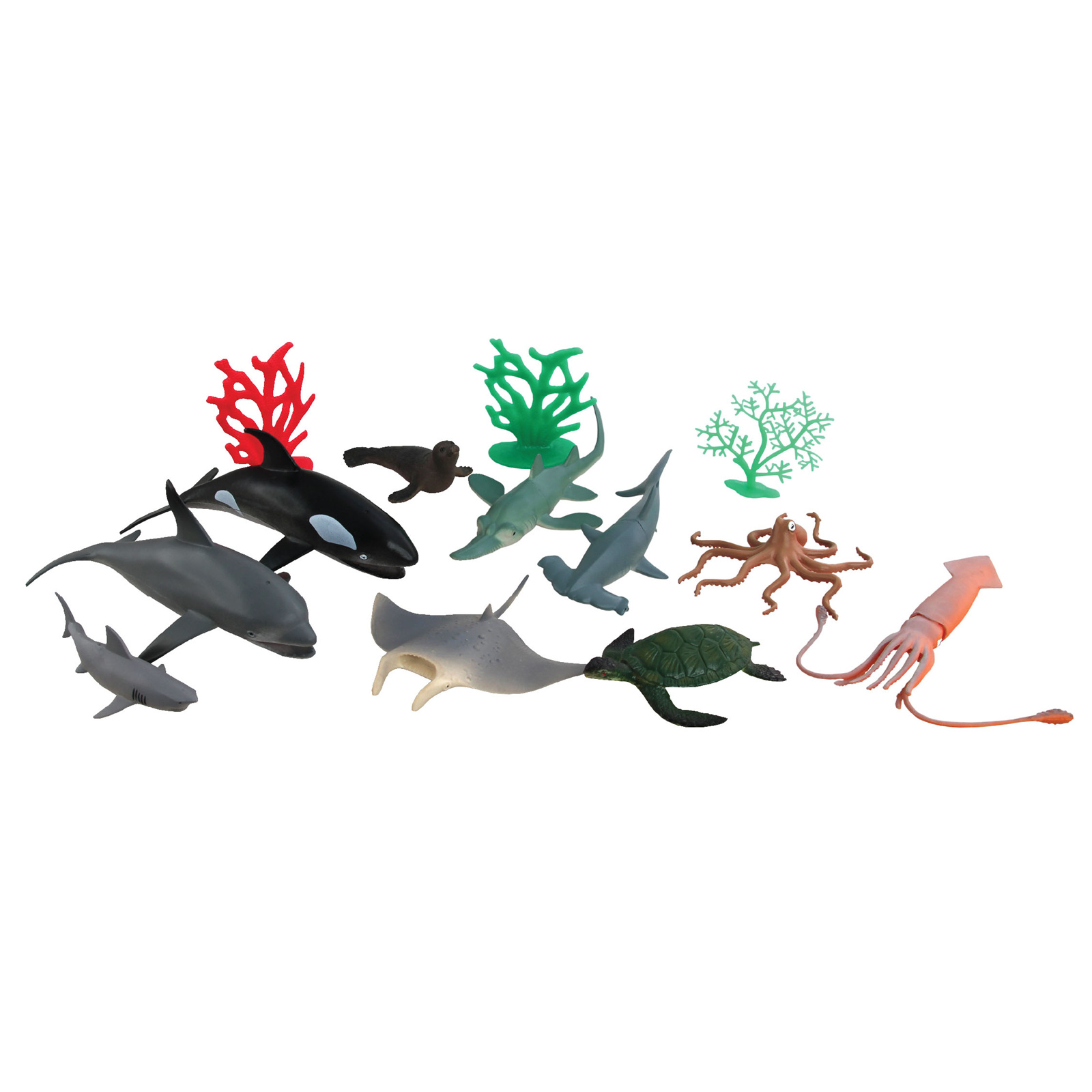 - Includes 13 vibrant ocean animal toys, featuring whales, dolphins, colorful fish, and more.