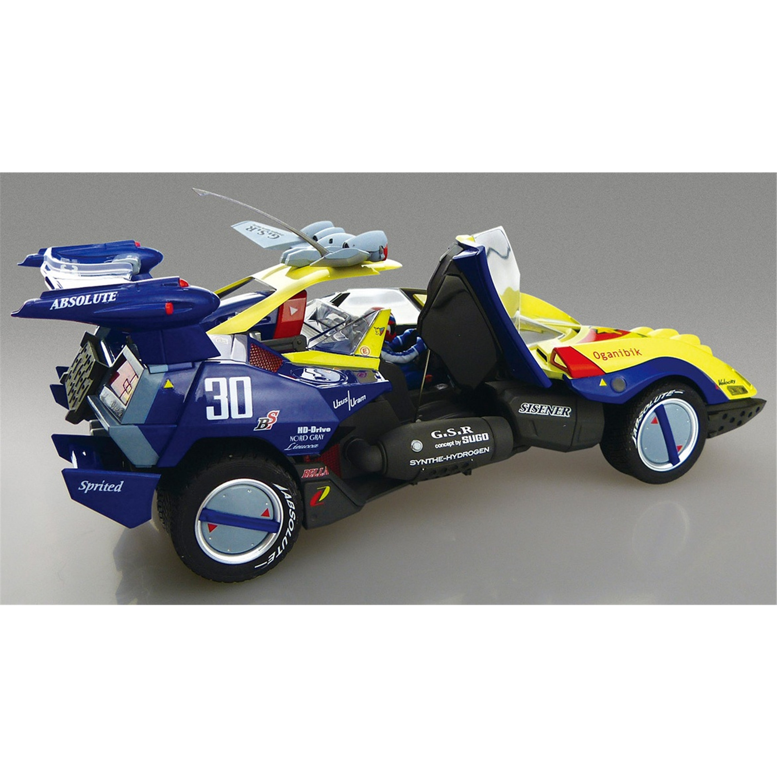 Aoshima presents a 1/24 scale kit of the Rally Mode Sugo Asurada G.S.X from "Future GPX Cyper Formula!" This kit features gimmicks to allow the wing to open, as well as the doors. Specialized Rally Mode-specific parts are included for the tires, chassis, and more.
