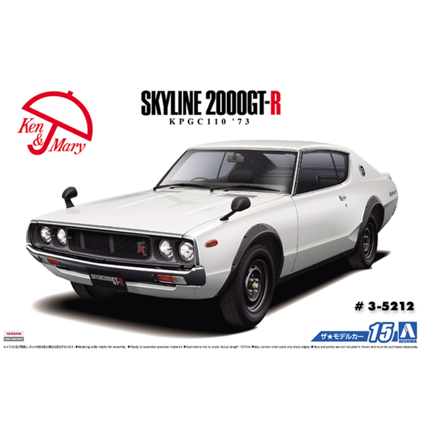 Here's a great hands-on way to celebrate the 60th anniversary of the Skyline: building this kit! From the box: "The C110 series 4th generation Skyline with the popular nickname 'Ken & Mary's Skyline' earned a minor change in September 1975. Of the series, the 2000GTX-E/S was a hot grade following the 'Ken & Mary's' GT-R spirit, equipped with 4 disc brakes, stabilizer and newly added rear wipers. Also, geniuine aluminum wheels became an option for the first time in the Skyline family. With a green color applied to the symbolic GT badge, it opened a new chapter for the history of Skyline.